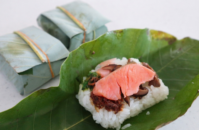 おもに葉の部分が使われてきましたが、これには理由があります。ホオノキの葉は水をはじき、燃えにくく、香りがあるので良い風味がつくのです。さらに、殺菌・抗菌作用があるので食中毒を防ぎ、食材の保存にも役立ちます。