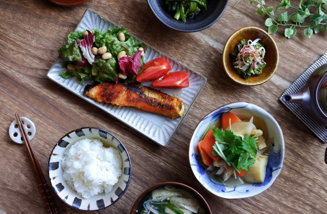 主食(ごはん、パン、麺などの炭水化物の供給源)、主菜(肉、魚、卵、大豆などのタンパク質の供給源)、副菜(野菜などの各種ビタミン、ミネラル、食物繊維の供給源)の3つをバランス良く食べるのがポイントです。